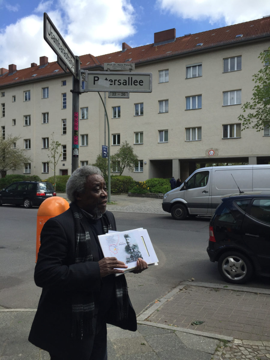 Finally, the case of Petersallee allowed us to rethink naming and demands for renaming beyond the dichotomies of victory and loss or injustice and correction. Petersallee was named in 1939 by the Nazis after Carl Peters, founder of the German East Africa colony. Known as “bloody hand,” Peters was so brutal that he was recalled from Africa and removed from his post in the German civil service. There were demands to rename the street in 1984, on the hundredth-year anniversary of the Berlin Congress, but they proved unsuccessful. Instead, the Berlin Senate decided to rededicate the street in 1986, adding a smaller sign with the name of Prof. Dr. Hans Peters above Petersallee. Hans Peters was a lawyer and mayor who actively opposed the Nazi persecution of Jews. Is renaming, then, always an indication of change? Are there different degrees of renaming—for instance, in total replacement or mere supplementation or qualification? Do these degrees of renaming correspond to degrees of acknowledging the unacknowledged or rewriting the written? Might new names in lieu of the contentious sometimes serve as pacificatory tools, as is arguably the case with the addition of Prof. Dr. Hans Peters’ name on Petersallee? Is such a concession a way of continuing the old in new ways even more perilous, because of their guise of political correctness?