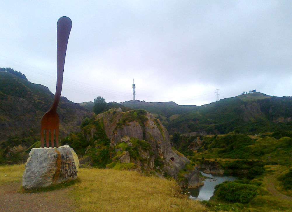 The brown water of another of the three ponds, Parkotxa, is a legacy of the 1970s. Mud was dumped in there from the treatment plant, which was the last part of the mining industry in the region to close down. This once-thriving little village, which had twenty-four bars, a forty-six-piece village band, hostels and schools, a cinema and theater, and even a police station, is now mainly residential with a few bars and restaurants. It has become a popular recreational destination, with visitors mainly from Greater Bilbao and beyond. The traditional dish of the miners, a bean stew, is famous in the region and many village restaurants serve it. Today, the area surrounding the water-filled mines is a recreational park (Peñas Negras) with picnic and barbeque facilities. It is popular for fishing (swimming is not permitted), walking, biking, and horse-riding. Although the original mining infrastructure is no longer extant, there is a mining museum. The village itself has some interesting features: for example, while its architecture is of a style unique in the Basque country, the same construction is seen in a number of mining communities around Asturias and Cantabria. Perhaps also worthy of note is the fact that, with many of the miners coming from outside the Basque country, some of the local toponyms were “castilianized” (for example, Larrañeta to La Reineta). In socioeconomic terms, the importance of Trapagaran extends well beyond the village itself, as the mining industry enhanced Bilbao’s economic development a great deal. Although small-scale ironworks already existed in the area, 1902 saw an English‒Basque partnership that culminated in the creation of the Biscay’s emblematic Altos Hornos (a huge ironworks complex). With its mineral resources and proximity to the seaport, and the area’s metallurgical tradition, Bilbao was a prime location. After the Spanish Civil War, during Spain’s rural exodus, the Basque industry attracted people from all over the country. Altos Hornos turned out to be crucial for Bilbao’s industrialization.
