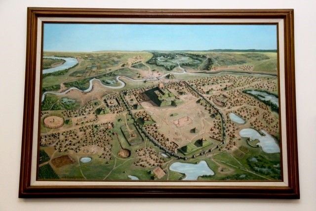Bill Iseminger's painted representation of the city of Cahokia. Photograph by Lynn Peemoeller