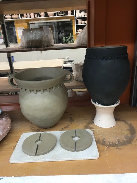 What really inspires me with the ancient pots is technically how they’re made. I look at these pots and think about how the walls are this thin and we know nothing about the technique! I’m trying to learn more about the temper that people used, which was mussel shells primarily. When we’ve gone out harvesting, I’ve then realized that I need to know about the mussels because there’s invasive mussels and there’s native mussels… If you’re on private land, it’s your own land and it’s okay. But on public land, you need a fishing license and you’re limited to so many mussels per… so now I’m a geek—every time I go to a restaurant and anybody is eating mussels, I’m like can I keep those shells? I know it’s not accurate because they’re not from around here, but it’s sometimes the only way to get plentiful mussel shells that I can process and then wedge into the clay. So, I think my lines are blurring a little bit more. I’m trying to better understand ancient pots, how they’re made, how they were used, with my contemporary concerns.