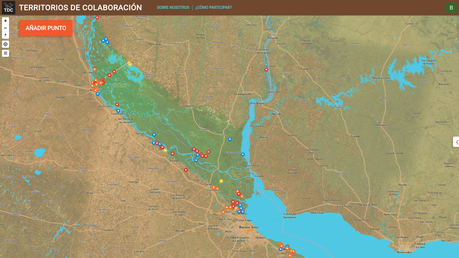 My own role at Casa Río was to curate the Spanish-language version of The Earth Will Not Abide, which was made in hopes of exactly this kind of collaboration. But in addition to that, during the preceding year I had discovered the work of a Seattle-based group called Mapseed, which is developing some exceptionally useful collaborative software for ecological and social issues. Their stuff, which is open source and can handle almost any kind of complex cartographic data, turned out to be modeled on a project entitled ¿Qué Pasa Riachuelo?, made in the early 2010s for citizen oversight of a river-cleanup process on the edge of Buenos Aires. In fact, the authors of that map, from a group called M7red, were participating in our project! The Mapseed team generously agreed to work with us on a shoestring budget, and we developed something like a multimedia geo-blog focusing on the five campaign sites, but open to unstructured community input. The theme was “collaborative territories” (Territorios de colaboración). Obviously there was one big question: Would anybody use it? One day I opened the map and saw that a wetlands enthusiast from the Rosario area had gone out to the islands in a small boat to film a bulldozer engaged in the illegal drainage of public property for private agricultural use—an elemental expression of the process of “continentalization” decried by the environmentalists.