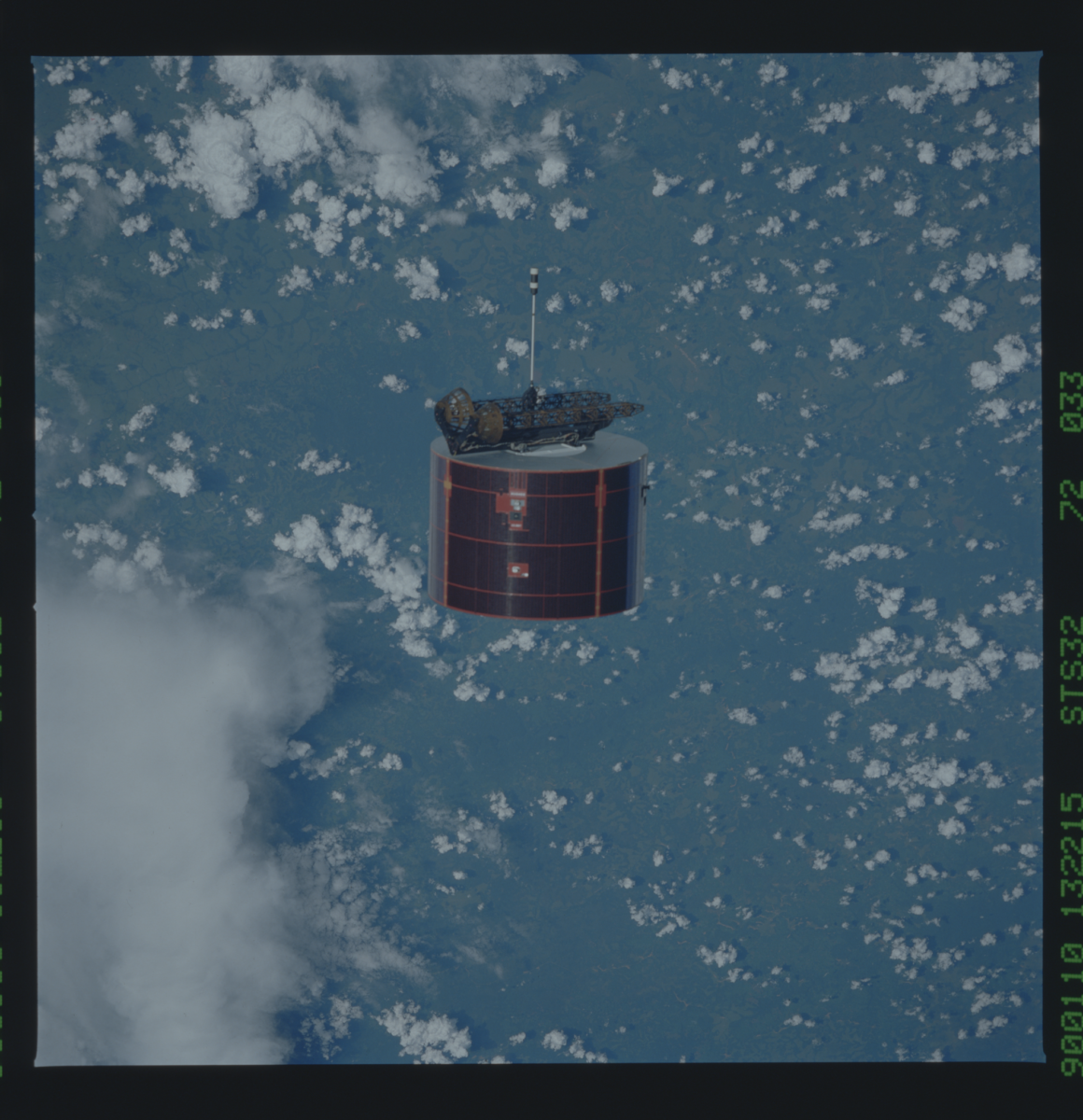 View of Earth with the SYNCOM IV communications satellite, January 10, 1990. Courtesy NASA, Public Domain