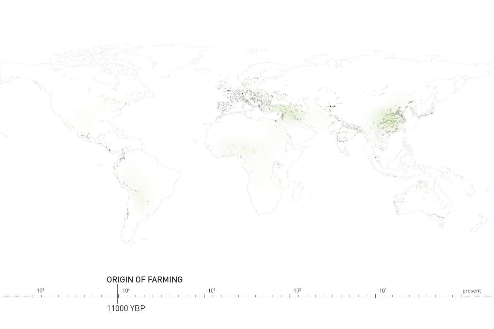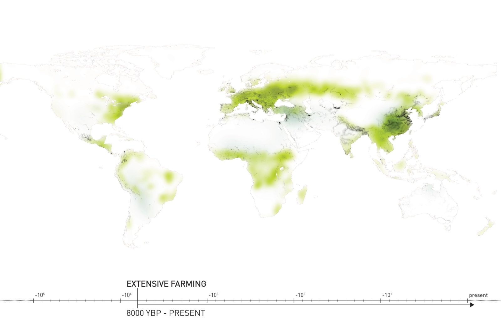 Global Late Quaternary megafauna extinctions linked to humans, not climate change. The late Quaternary megafauna extinction was a severe global-scale event. Two factors, climate change and modern humans, have received broad support as the primary drivers, but their absolute and relative importance remains controversial. To date, focus has been on the extinction chronology of individual or small groups of species, specific geographical regions or macroscale studies at very coarse geographical and taxonomic resolution, limiting the possibility of adequately testing the proposed hypotheses. We present, to our knowledge, the first global analysis of this extinction based on comprehensive country-level data on the geographical distribution of all large mammal species (more than, or equal to 10 kg) that have gone globally or continentally extinct between the beginning of the Last Interglacial at 132,000 years BP and the late Holocene 1,000 years BP, testing the relative roles played by glacial–interglacial climate change and humans. We show that the severity of extinction is strongly tied to hominin palaeobiogeography, with at most a weak, Eurasia-specific link to climate change. This first species-level macroscale analysis at relatively high geographical resolution provides strong support for modern humans as the primary driver of the worldwide megafauna losses during the late Quaternary. SOURCE: Christopher Sandom, Søren Faurby, Brody Sandel, et al., “Global Late Quaternary megafauna extinctions linked to humans, not climate change,” 'Proceedings of the Royal Society B', 2014, 281 20133254, doi: 10.1098/rspb.2013.3254, published June 4, 2014 . The start of the period of large-scale human effects on this planet (the Anthropocene) is debated. The industrial view holds that most significant impacts have occurred since the early industrial era (~1850), whereas the early-anthropogenic view recognizes large impacts thousands of years earlier. This review focuses on three indices of global-scale human influence: forest clearance (and related land use), emissions of greenhouse gases (CO2 and CH4), and effects on global temperature. Because reliable, systematic land-use surveys are rare prior to 1950, most reconstructions for early-industrial centuries and prior millennia are hind casts that assume humans have used roughly the same amount of land per person for 7,000 years. But this assumption is incorrect. Historical data and new archeological databases reveal much greater per-capita land use in preindustrial than in recent centuries. This early forest clearance caused much greater preindustrial greenhouse-gas emissions and global temperature changes than those proposed within the industrial paradigm SOURCE: William F. Ruddiman, The Anthropocene. Annual Review of Earth and Planetary Sciences, vol. 41 (2013): pp. 45‒68. ADDITIONAL SOURCES: Bellwood, Peter, First Farmers: The origins of agricultural societes. Oxford: Wiley-Blackwell, 2004. Fuller, Dorian Q., “The Origins of agriculture,” General Anthropology, vol. 17, no. 1 (2010.): pp. 8–12. Humans have altered the Earth’s land surface since the Paleolithic mainly by clearing woody vegetation first to improve hunting and gathering opportunities, and later to provide agricultural cropland. In the Holocene, agriculture was established on nearly all continents and led to widespread modification of terrestrial ecosystems. To quantify the role that humans played in the global carbon cycle over the Holocene, we developed a new, annually resolved inventory of anthropogenic land cover change from 8,000 years ago to the beginning of large-scale industrialization (AD 1850). This inventory is based on a simple relationship between population and land use observed in several European countries over preindustrial time. Using this data set, and an alternative scenario based on the HYDE 3.1 land use data base, we forced the LPJ dynamic global vegetation model in a series of continuous simulations to evaluate the impacts of humans on terrestrial carbon storage during the preindustrial Holocene. Our model setup allowed us to quantify the importance of land degradation caused by repeated episodes of land use followed by abandonment. By 3 ka BP, cumulative carbon emissions caused by anthropogenic land cover change in our new scenario ranged between 84 and 102 Pg, translating to c. 7 ppm of atmospheric CO2. By AD 1850, emissions were 325–357 Pg in the new scenario, in contrast to 137–189 Pg when driven by HYDE. Regional events that resulted in local emissions or uptake of carbon were often balanced by contrasting patterns in other parts of the world. While we cannot close the carbon budget in the current study, simulated cumulative anthropogenic emissions over the preindustrial Holocene are consistent with the ice core record of atmospheric d13CO2 and support the hypothesis that anthropogenic activities led to the stabilization of atmospheric CO2 concentrations at a level that made the world substantially warmer than it otherwise would be. SOURCE: Jed O. Kaplan, Kristen M. Krumhardt, Earle C. Ellis, et al., “Holocene carbon emissions as a result of anthropogenic land cover change,” The Holocene, vol. 21 (2011): pp. 775–91. We review the origins and dispersal of rice in Asia based on a data base of 443 archaeobotanical reports. Evidence is considered in terms of quality, and especially whether there are data indicating the mode of cultivation, in flooded (“paddy” or “wet”) or non-flooded (“dry”) fields. At present it appears that early rice cultivation in the Yangtze region and southern China was based on wet, paddy-field systems from early on, before 4000 BC, whereas early rice in northern India and Thailand was predominantly dry rice at 2000 BC, with a transition to flooded rice documented for India at c. 1000 BC. On the basis of these data we have developed a GIS spatial model of the spread of rice and the growth of land area und