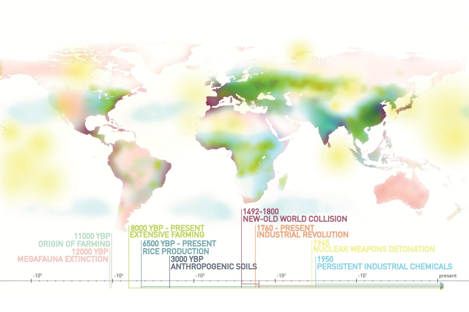 The debate about the exact date of birth of the Anthropocene is still under way. Whatever it will be (or rather, will have been), global-scale human influence goes back to prehistoric times. Christopher Reznich has compiled a small atlas that scales mankind’s tampering with the Earth’s spheres—from the global mega-fauna extinction to the spreading of persistent industrial chemicals.