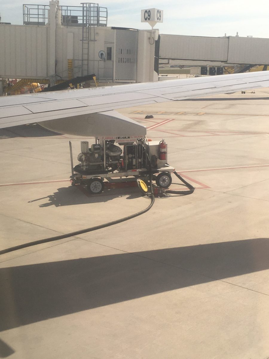 Refueling before take-off, New Orleans International airport - Berlin, Tegel, estimated emissions of 965kg of CO2 , 17 November 2019. Photograph by Thomas Turnbull