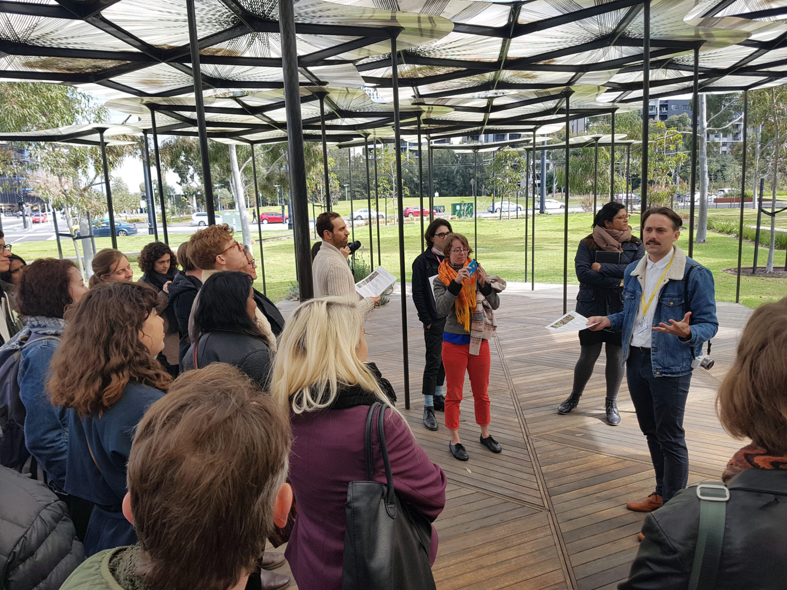 The Anthropocene Campus held in Melbourne in 2018 (ACM18) brought lectures, reflections, workgroups, off-site events, and fieldwork activities under the theme “the Elemental.” It organized seminar streams around the main theme of the four elements, which play a major role in the changes induced by anthropic activities at a global scale: earth, fire, water, and air/flesh. The change of climatic dynamics has caused, for instance, an increase in bushfires in Queensland, the northern tropical part of Australia. The cause for this rise in temperatures and droughts underpinning this anthropocenic phenomenon is the increasing emissions of carbon that have altered the climate itself. The main activities of ACM18 have not only taken place in Deakin University’s downtown Burwood Campus, but also led us to the so-called Docklands. Once the city’s old docks area, it has been transformed into a large-scale commercial, residential, and leisure development project, which is slowly seeping to the west of Southern Cross Station.