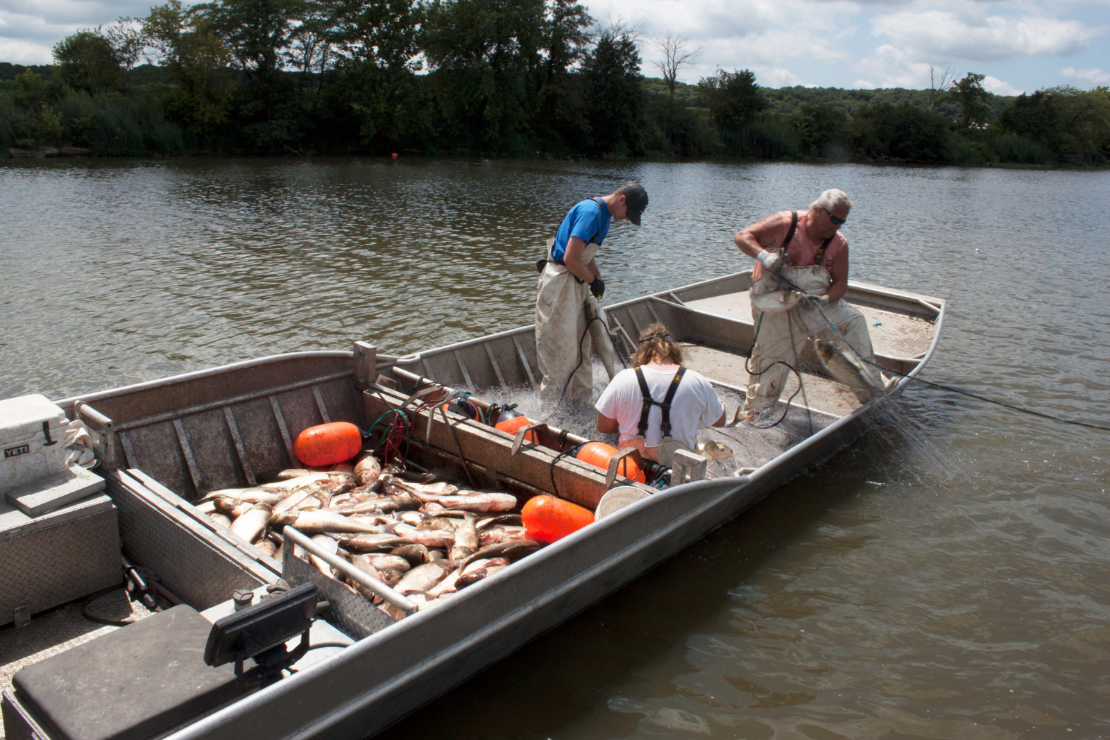 At the northern expanse of the Illinois River, which connects the Mississippi to the ship canal onward to Lake Michigan, The Illinois Department of Natural Resources (IDNR) hires regional river fishers to gill net as many carp as possible in hopes of reducing their numbers in the ship canal, and thus the probability of their heading into the Great Lakes; a kind of eco-border control.