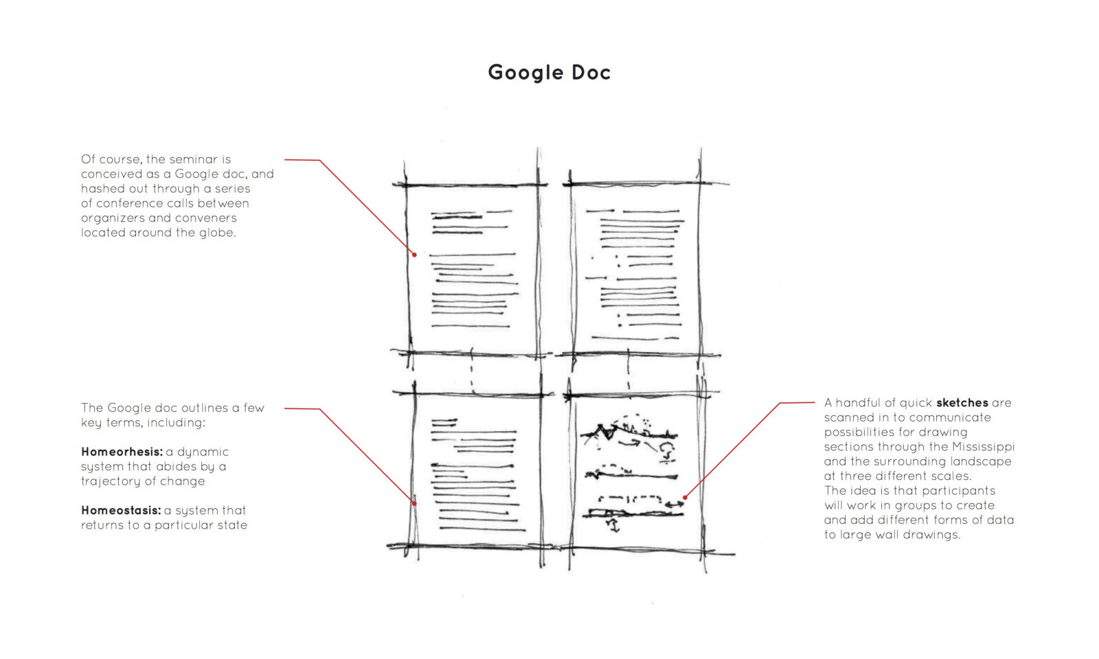 To prepare for this seminar, a multi-disciplinary group of organizers and conveners—Aron Chang, Jorg Sieweke, Dorothy Jelagat Cheruiyot, Derek Hoeferlin, and Nikiwe Solomon—came together several months prior via web conferences to determine the primary methodology to organize the seminar around. What practice, what process, would be capacious and flexible enough to support a diverse group of seminar participants in studying the control of the Mississippi River at multiple scales, along with its ecology and history? What would allow us to engage Nikiwe’s introduction of multi-species ethnography alongside an exploration of microbes, algae, insects, and plants with Jelagat? Or to engage the landscape-scale analysis and diagramming of Jorg and Derek alongside the lived experiences and community-based perspectives of local experts Tanya James and Greta Gladney, or the scientific perspective of Cyndhia Ramatchandirane?