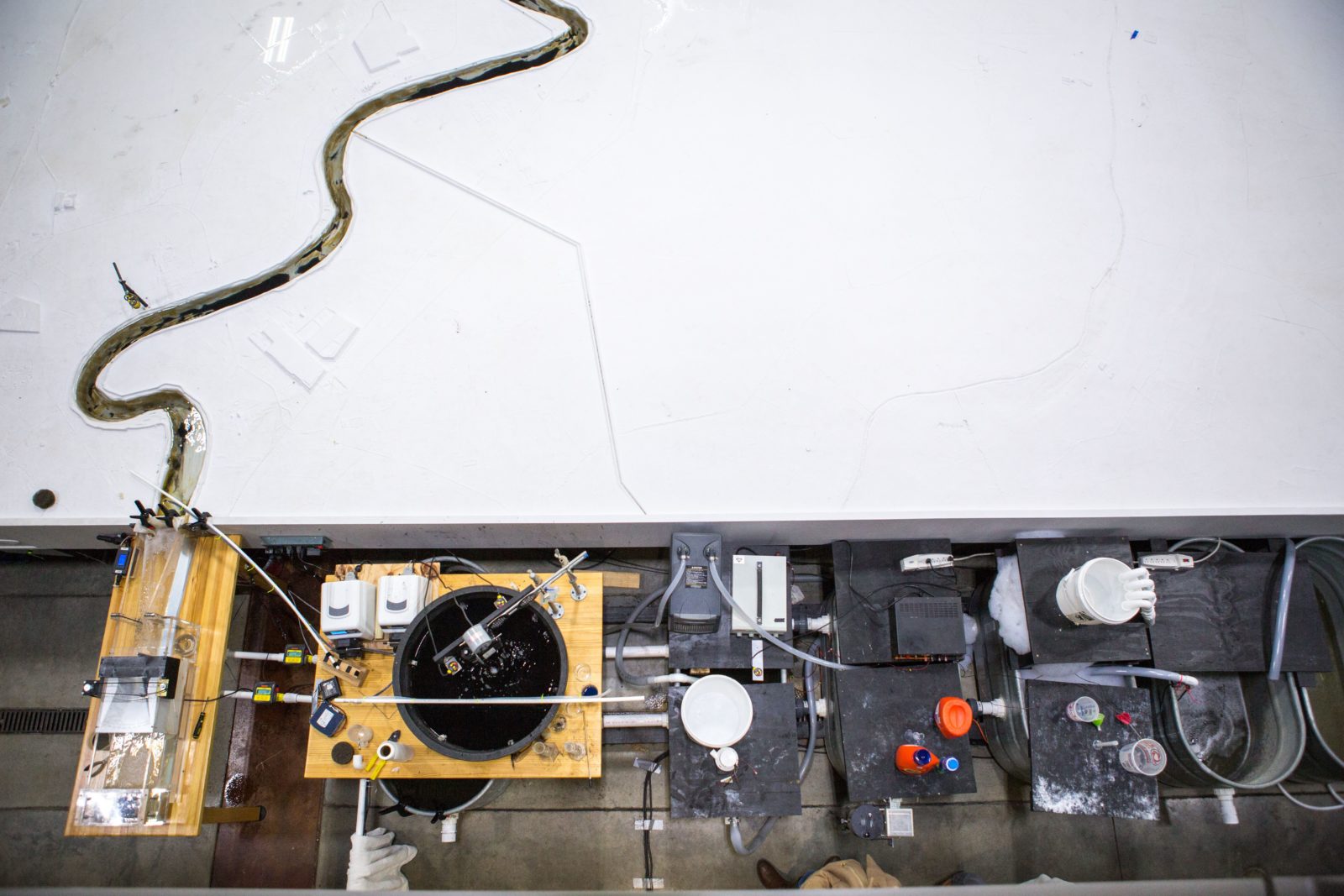 The river model, and Nathan’s interjection, emphasized that even when one is looking back to the 400-million-year history of the river’s sedimentary processes, there is no aspect of science that lies beyond politics—just as there is no form of politics free from the constraints of the physical world. The model, as such, reflects a wider problem. Like many forms of knowledge, basic scientific understanding about sedimentation, hydrogeomorphology, and Earth sciences in general—and, in all likelihood, a vast amount of the research on which the notion of the Anthropocene is founded—indirectly owes much of its existence to the petrochemical industry.9 Without the deep pockets of oil companies, many geological sites would go uninterrogated and many advances in our understanding of Earth’s shifting composition would not have been achieved. This does not mean we should exonerate a petrochemical industry that has long acted in full awareness of its destructive capacities. But it does require us to recognize that geologists are at the sharp end of the Faustian pact with the hydrocarbon industry that a great proportion of us have entered into.