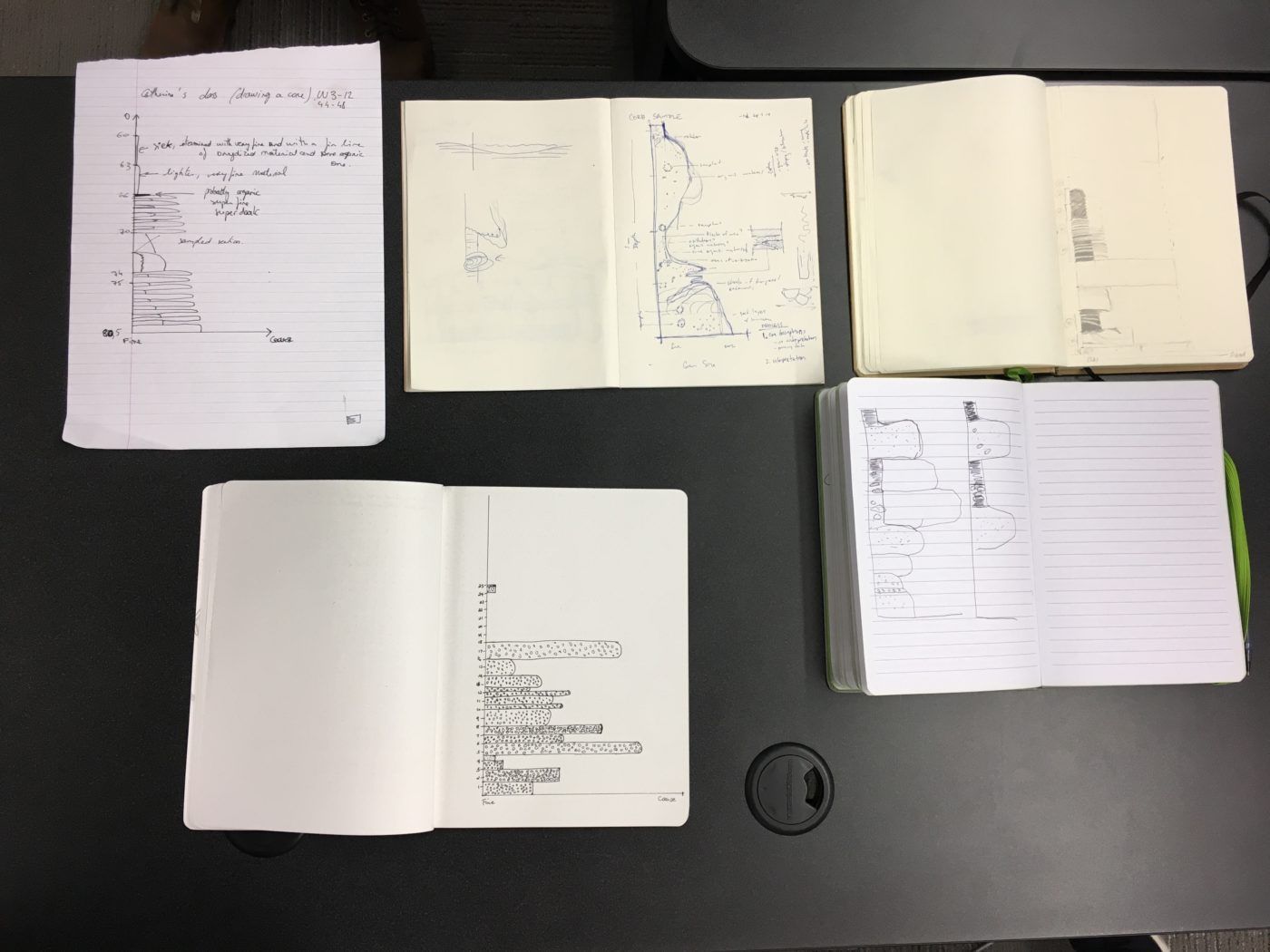 Core Diagrams sketched by various seminar participants. Photo by Neli Wagner Core diagram sketched from Mississippi Sediment Core. Drawing by Seung Hee Cho