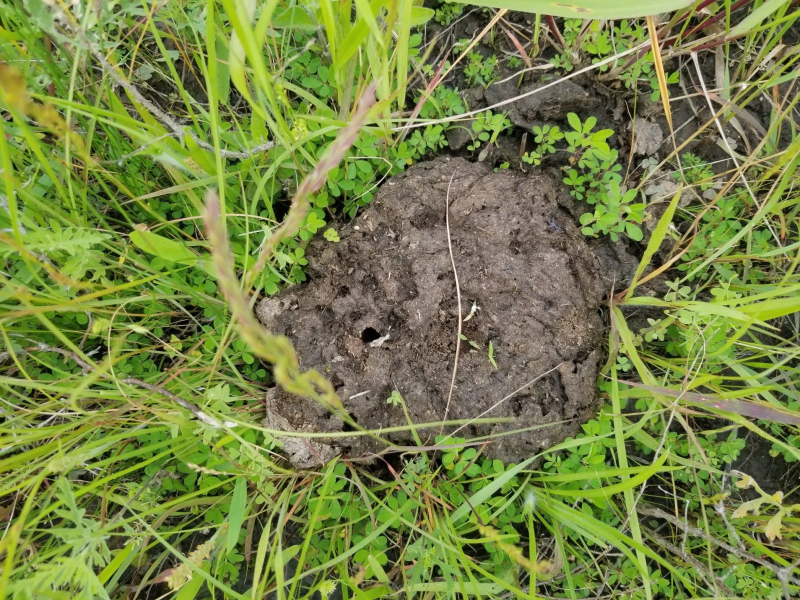 Seedlings germinating from bison dung in late spring 2019. Photo by Natalie G. Mueller