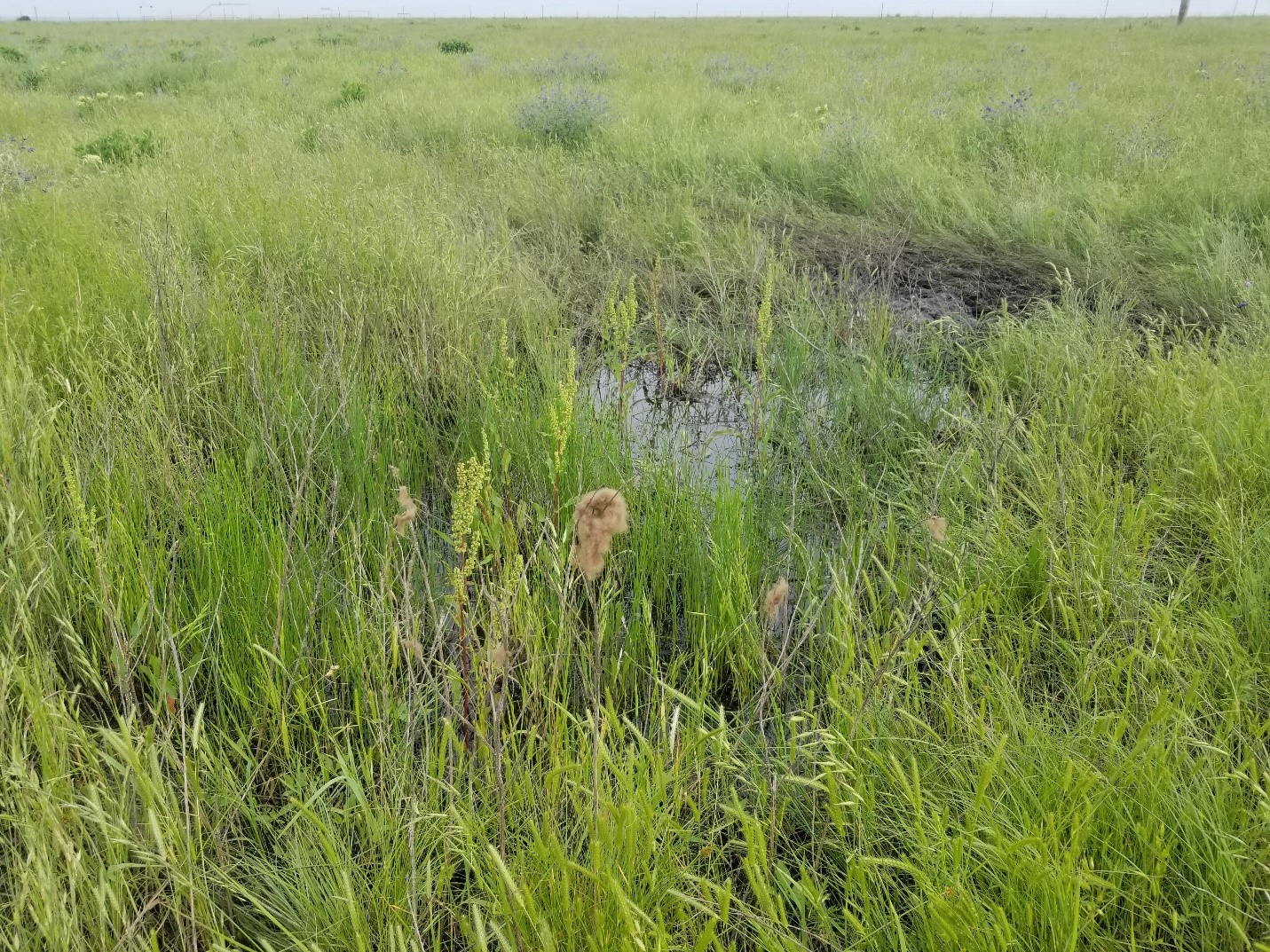 Before I started this project, I already knew the answer to this last question was “yes,” from a previous study conducted on the Joseph H. Williams Tallgrass Prairie Preserve, a Nature Conservancy project near Pawhuska, Oklahoma. Claudia Rosas and her colleagues collected 144 dung samples over the course of an entire year on the prairie, and documented two of the lost crops (little barley and sumpweed) in dung. They also collected fur from bison during the annual fall roundup, and documented the same two species (along with many others) in these samples. This is remarkable, since little barley sets seed in May and June; these plants were hitching a ride on a bison’s back all summer! Wallows are formed partly by bison rolling around on the ground, so there is a high potential for these furry animals to both pick up and drop off seeds in these prime locations. Lucky seeds who wallow-hop with bison will find themselves germinating in nitrogen-enriched, well-watered clearings, and ideal place to be a baby plant.