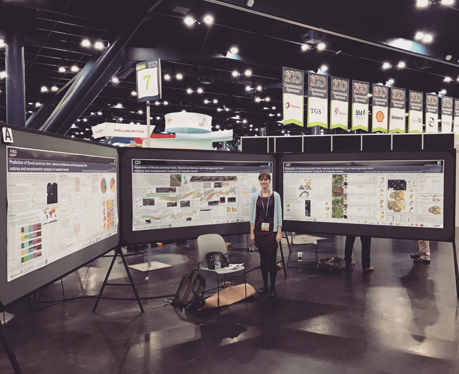 Catherine presents her PhD research findings at the American Association for Petroleum Geoscience in Houston, Texas, 2017. Photograph by Catherine Russell