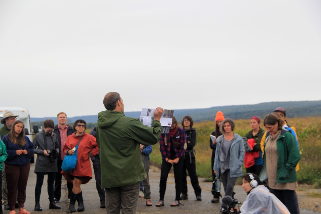 Vehicles turn into the cracked, concrete parking lot under a grey drizzle. First a few, then a few more. We are nearly all late due to some combination of distance, weather, and the need for breakfast. The damp chill prompts many people to wait in their cars, breath fogging glass. Our host, Randy Poelma, environmental specialist for the Ho-Chunk Nation of Wisconsin, stands outside his truck in a green rain jacket, chatting casually with the handful of people who venture out of their vehicles to explore the surroundings.