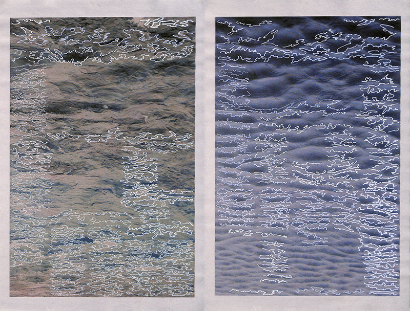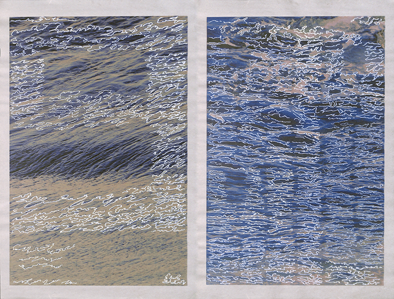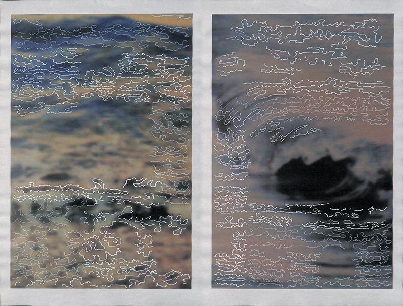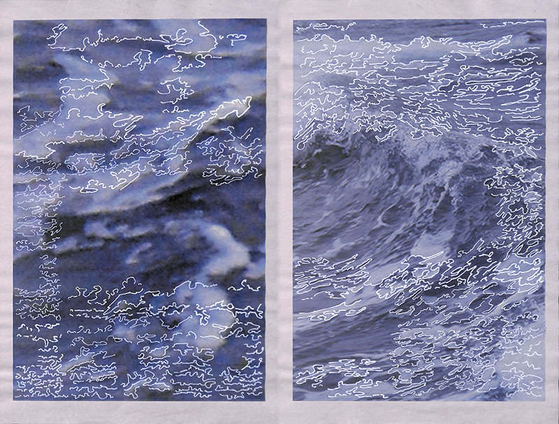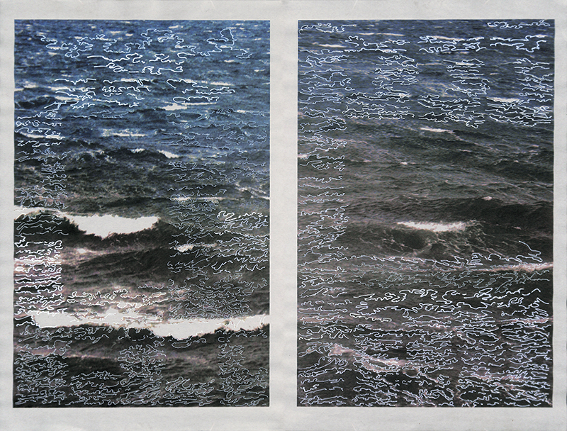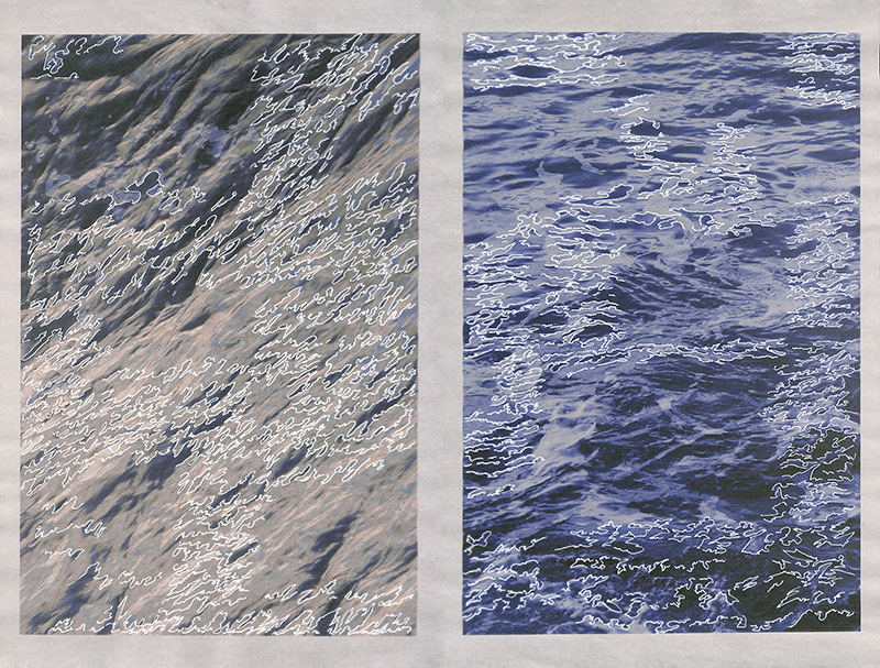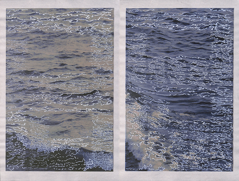 Toshiaki Hicosaka’s “Newspaper Sketches of Ocean Waves” (2016) invites viewers to gravitate toward an undefined cognitive space that exists beyond the identifiable lines of ocean waves and cursive letters, by resisting our temptation to instantaneously identify the visual appearance (i.e. the ocean waves or words) as a clear representation of the knowledge we already have. Now, what does it mean to pause over such an invitation in our globalizing world? What does it mean to re-enact the particular experience of an individual in our current context: is it as a work of contemporary aesthetics?