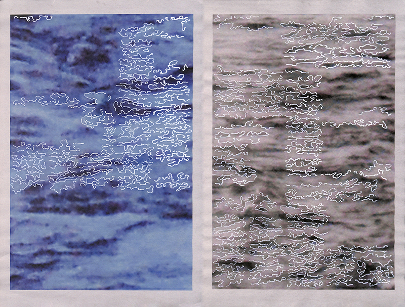The process was as follows: I would take a photo of the ocean surface at the local beach, print it out on paper matching the size of the local newspaper, and make a drawing with a white pen on top of it. The drawing would reference the layout of both the photos and words on the local newspaper published each day, and I would publish my work every day during the residency period as “Newspaper Sketches of Ocean Waves.” I would then overlay the newspaper and print out the images of the ocean one on top of the other, and gradually draw a line against the areas of printed words as if I was writing a sentence with cursive letters. I set a rule, whereby I would try not to forget to trace the shape of the ocean waves that remained on the photograph of the ocean surface as I moved the tip of a pen. In other words, the line would be drawn while my consciousness was suspended mid-air between my attention to writing words (i.e. the movement of my hand) and attention to tracing the ocean waves (i.e. also a hand movement). If I leant too far toward one side of this consciousness, I found that the line I drew became too lively and very poor. The difficulty of drawing without being partial to one or other of these two types of focus—of maintaining balance, of keeping my consciousness in mid-air—is similar to the way in which it is difficult for one’s body and its perceptions to avoid automatically imposing its own pre-existing ideas or understandings on everything encountered. I published the drawing I attempted thus as a different kind of newspaper each day. Newspapers usually take on the role of naming and fixing “actuality” (i.e. reporting on what is happening) in society locally, nationally, or internationally. However, with this project, I tried to consider an alternative possibility for the medium by publishing the enacted experience of Heco as my personal experience—a trace embedded in a reality of an individual—as a different sort of ambiguous information in newspaper form.