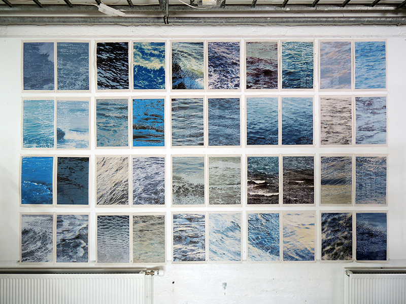 On the Auckland, the merchant ship that had rescued him, Heco had one particularly interesting experience. The location of the ship heading to San Francisco was, geographically speaking, a middle point that connected Japan with its foreign neighboring countries; it was also, on a symbolic level, a middle point of Heco’s process of experiencing the “world.” The people Heco encountered onboard the Auckland had an appearance altogether different to the Japanese and they communicated in an unknown language. Such lonely circumstances may have precipitated Heco looking inside one of the sailor’s diaries, where the continuous lines of cursive letters he mistook as the shape of waves moving up and down: in other words, “sketches of ocean waves.” How did this misunderstanding relieve his feeling of isolation onboard the ship? Perhaps the texture of the world shifted to a more positive one than the previous state. With my mind filled with this anecdote, consequently during my NES artist residency in Iceland in February and March 2016, I embarked on the project “Newspaper Sketches of Ocean Waves,” in order to re-enact this experience of misunderstanding.