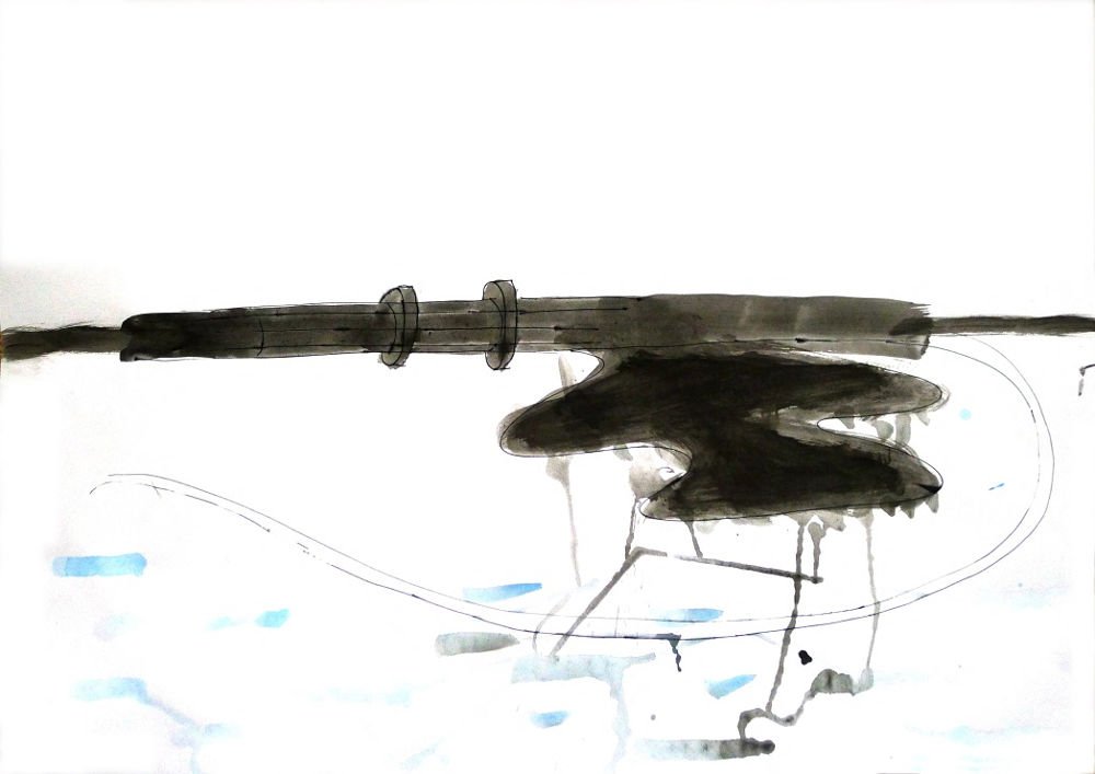 This pipe runs through Ikarama, Nigeria. Painting by John Moran