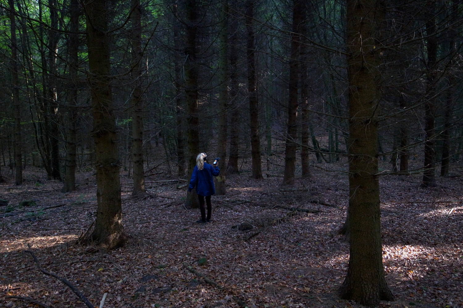 The trees in this forest—a combination of native fir trees and Douglas firs imported from North America for their robust and rapid growth patterns—were planted by humans over a hundred years for eventual cultivation. The plantation site had been claimed by the new East German government not long after the partition of the German state, and its original owner—the forester who had imported and cultivated the Douglas firs and planted the trees—was sent to a labor camp in Siberia for eleven years, for the crime of private land ownership. The land was then subdivided into smaller plots, each allocated to residents in the nearby township. However, these subplots were not large enough to provide any supportive means other than occasional firewood. Over this period, either the trees were left untouched, or the plots were stripped to fuel the coal ovens of the people to whom the land had been redistributed. Normally, plantation forest firs would be harvested at about seventy years. However, the traditional lifespan up to the harvesting of the trees at this site coincided with the fall of the Berlin Wall, and the handover of ownership of the land to a newly formed, unified German government. When the stewardship of this land was passed to the repatriated German state, the government was hesitant to harvest a site whose ownership was in dispute. The trees were left to grow, while the government adjudicated over the very human concern of property. As such, the trees that remained on site were granted a lifespan longer than the normally truncated life dictated by human industry. They have become “wild.” After reunification, the children of the original owner of the site sought to have the land returned to them; however, the attendant government, in all likelihood concerned with the costs associated with a difficult reunification process, decided not to grant their wish. The family therefore decided to purchase a smaller section of the original land, and continue the plantation ambitions that had so interested their forefathers. Mecklenburg traditionally was considered one of the poorer districts in Germany, and the reason for this is largely agricultural; the land cannot produce crops at the same rate as other German regions, and was used mostly for grazing cattle. This conception of Mecklenburg as “poor” relates to land that is valued in terms of its utilitarian (agricultural) use only. Surrounding the site of the plantation are numerous wind farms, whose tall, white wind turbines now mark and redefine the landscape sonically and visually—a repurposing and re-aestheticizing of the landscape for utilitarian purposes.