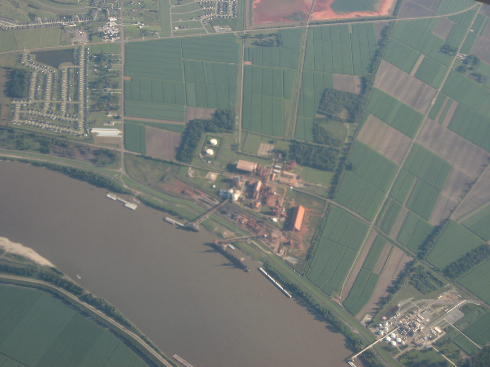 Industrial agriculture in White Castle, Louisiana, along the Mississippi River. Ken Lund, CC BY-SA 2.0