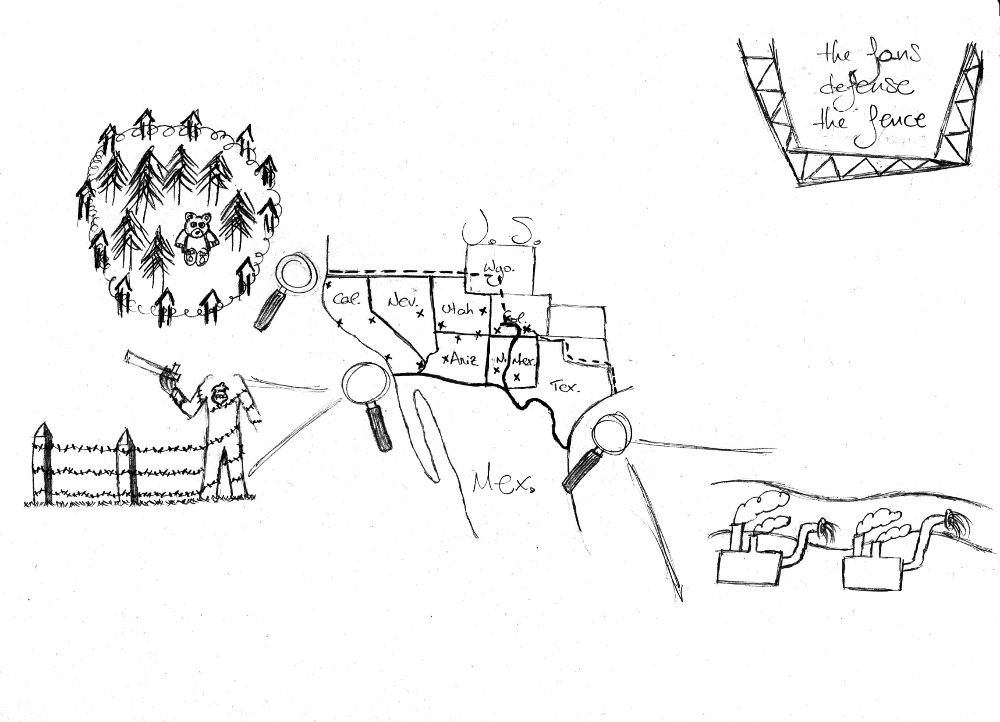 The US Southwest is full of fences. The border fence between the USA and Mexico blocks not only “illegal, alien” human beings, it also blocks many other animal species.1 As fixed as the border/fence might seem, it was drastically moved over 150 years ago, in 1848, when the USA annexed its present day southwestern states, after the Mexican–American war. A popular saying in the area goes:
