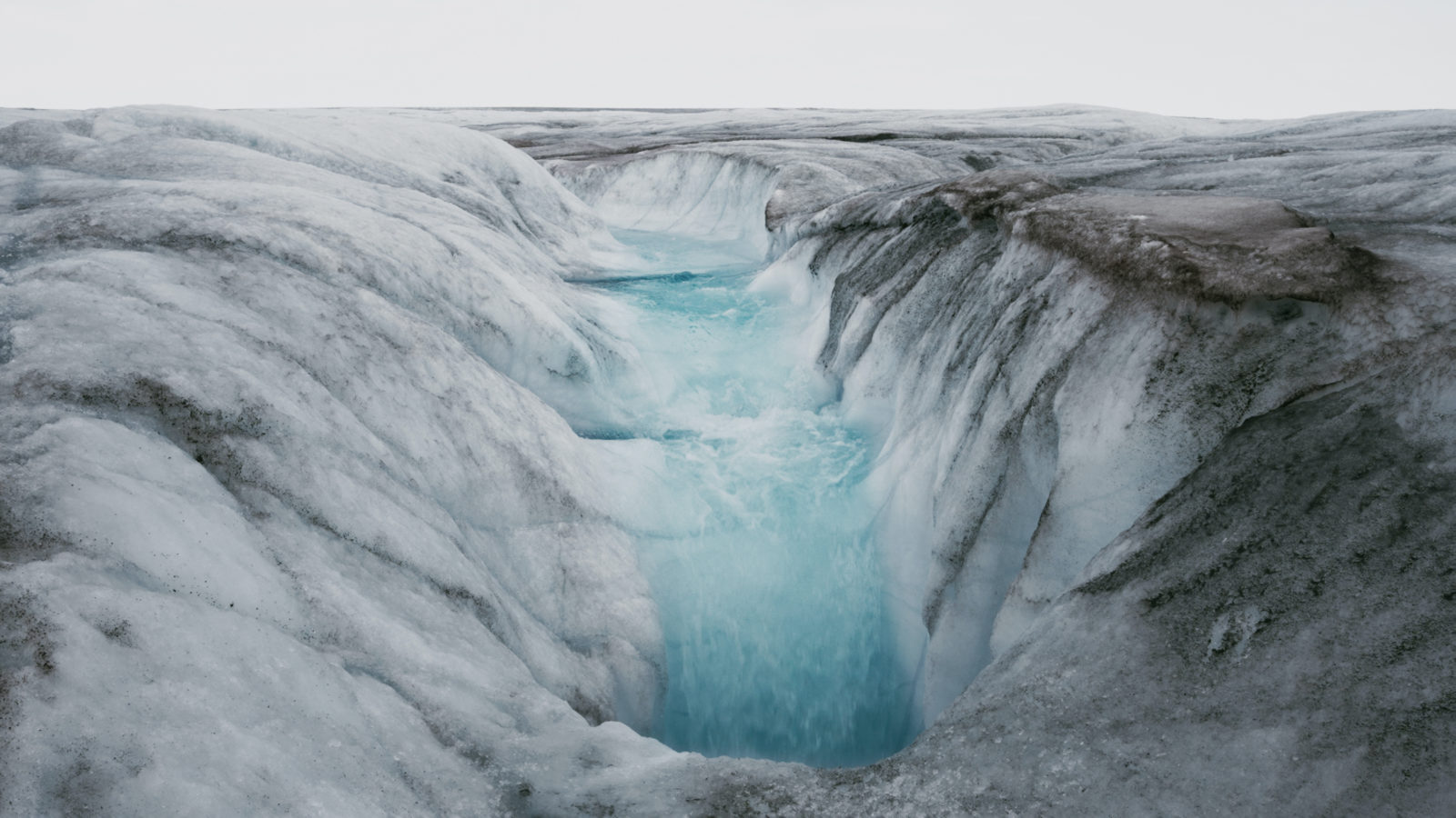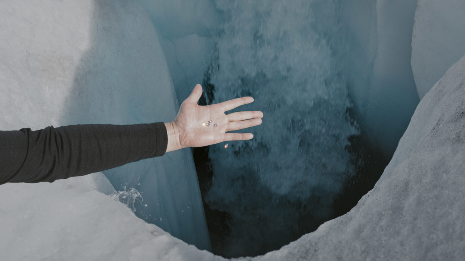 This contribution by artist Julian Charrière is based on research and materials gathered during a scientific expedition in Northern Greenland in the summer of 2021. Charrière artificially remodels a biogeochemical cycle and casts it into a performance of reverse extraction: in the installation Weight of Shadows and the accompanying video work Pure Waste, carbon molecules are captured from the air before they sink into polar glaciers, and turned into diamonds which are then “wastefully” cast into that same glacier’s crevasses.