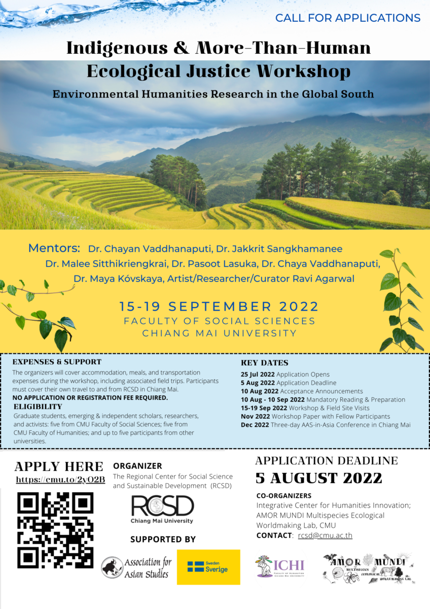 Organized by: the Regional Center for Social Science and Sustainable Development (RCSD) in collaboration with the American Association for Asian Studies (AAS-in-Asia), AMOR MUNDI Multispecies Ecological Worldmaking Lab and the Integrative Center for Humanities Innovation of Chiang Mai University