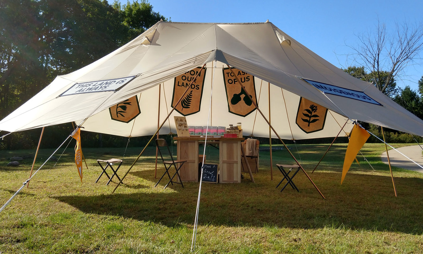 Moraine/Terminal is a portable gathering, exhibition, and conversational space traveling alongside the mobile seminar Over the Levee, Under the Plow. Beneath and beside a freestanding, open-sided tent, a number of elements reinforce Anthropocene Drift themes and concerns. A live-edge tabletop crafted from salvaged, climate-killed ash by master woodworker Jon Lund is a focal point for conversations for Temporary continent., distribution of Field Guides to the Anthropocene Drift and other literature related to the project, as well as youth-planned activities such as seed ball making. The terminal also exhibits portions of larger projects by Ryan Griffis (Beyond Extraction: A Fluid Story) and Dylan AT Miner (This Land is Always).