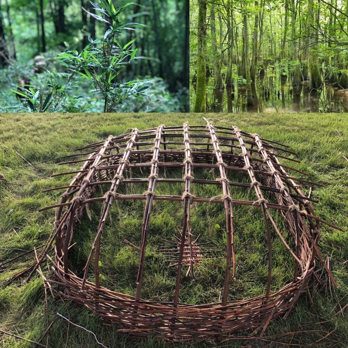 As ecosystem participants, the artists built a traditional Celtic boat from willow and cowhide, known as a coracle, to navigate the Southern Illinois landscape. Named Possibility, this living portal built using non-extractive methods invites us to reenvision ourselves in nature. According to Indigenous historical records, kindred boats called bull boats coursed the Ohio and Mississippi rivers long before Europeans arrived. Visitors may contemplate the canebrake in the coracle, read about the process, study instructions for planting a canebrake, and learn more about participatory ecology.